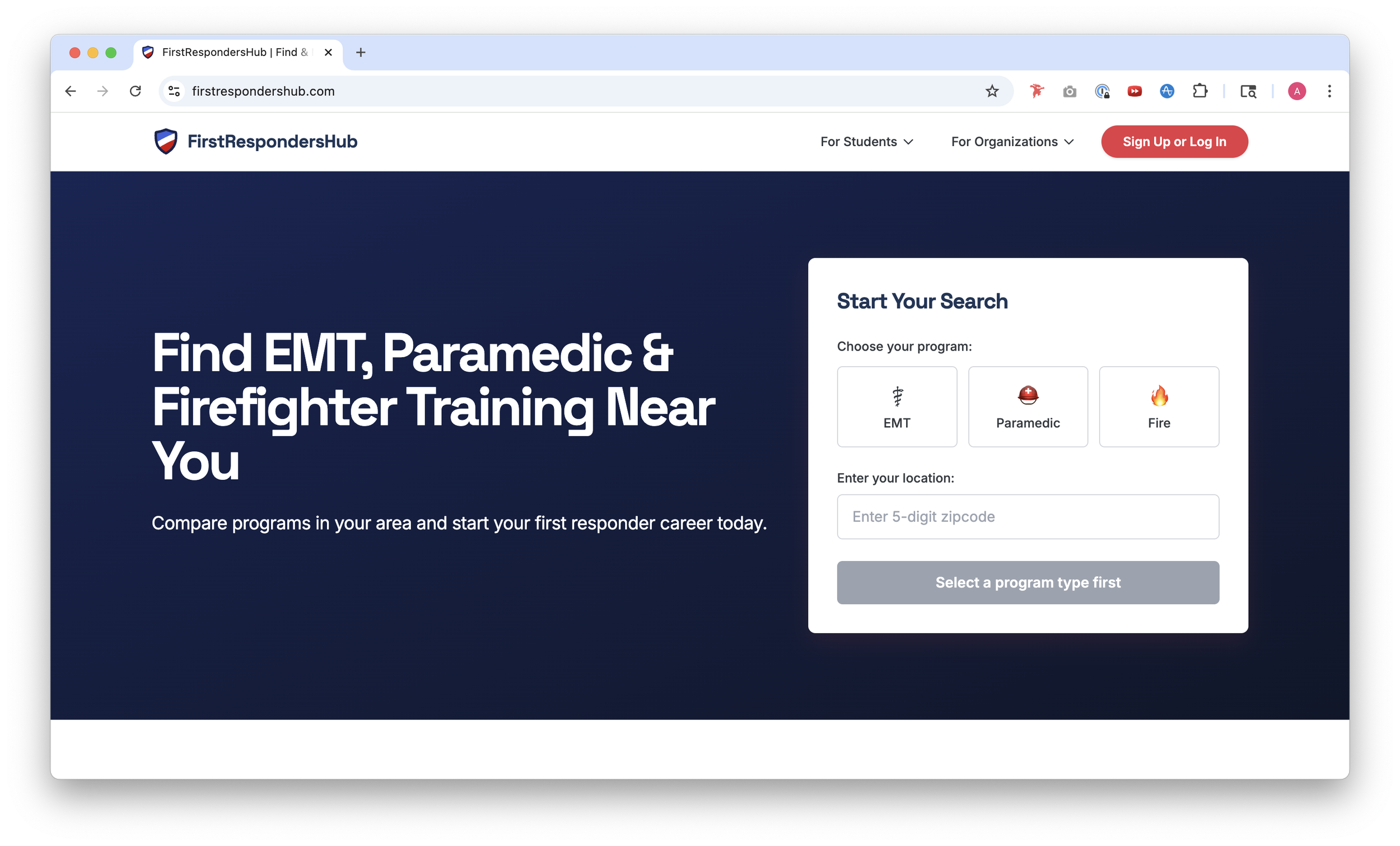 FirstRespondersHub is a platform designed to connect students and first responder training organizations.